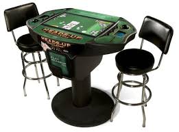La Heads-Up Challenge Poker Table est une table de poker électronique pensée pour des duels palpitants à deux joueurs. Son design s’inspire des meubles “cocktail table” d’arcade, ce qui lui permet d’être à la fois un élément de décor élégant et une véritable machine de jeu.